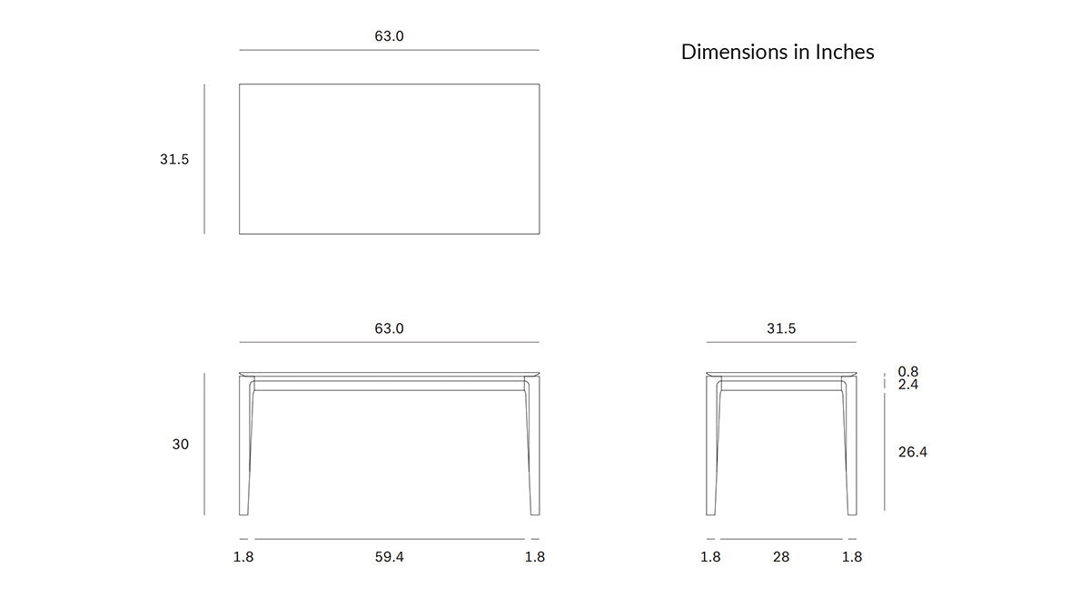 Elan Dining Table (5.3 feet) - Solid Teak/Walnut/Oak Wood