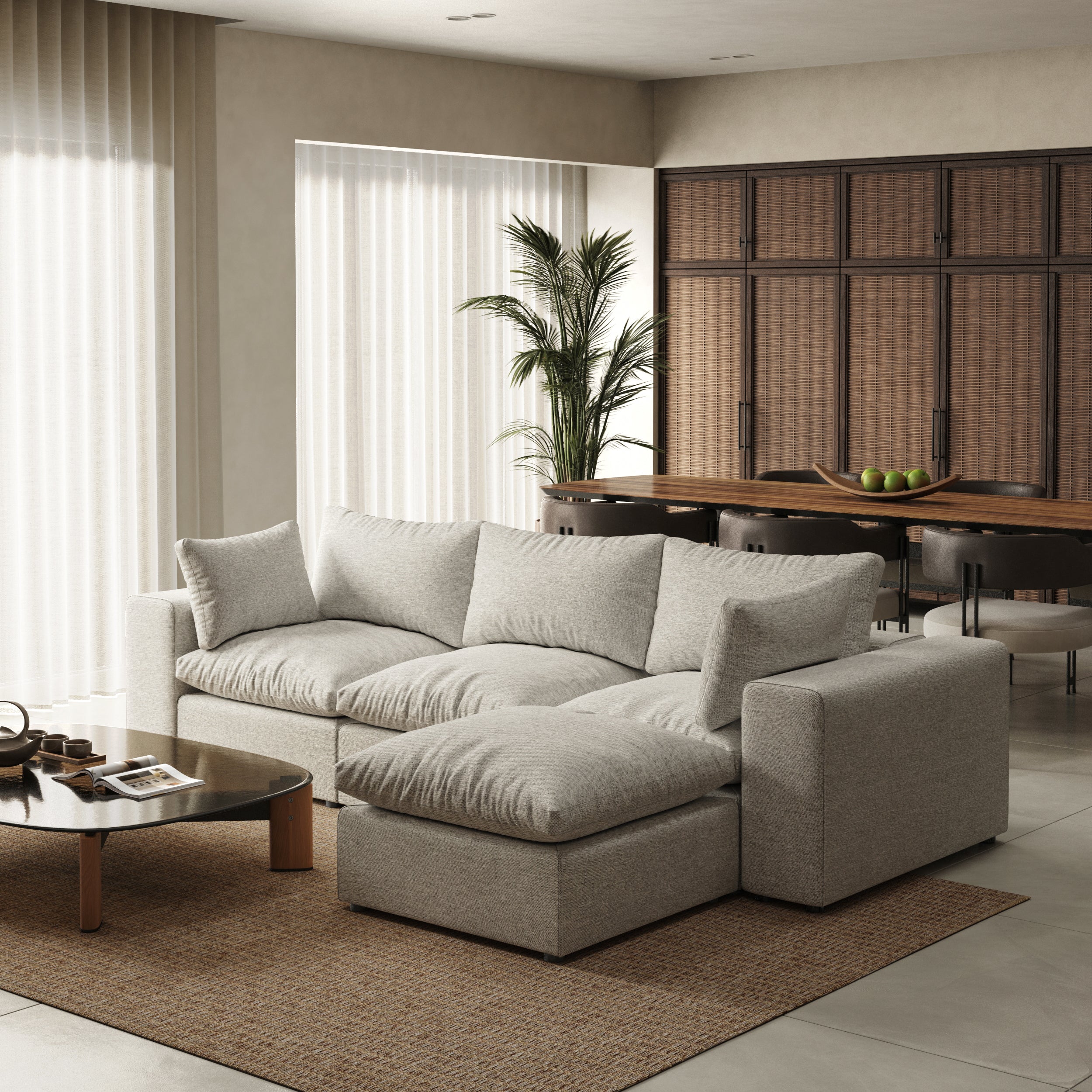 The cushions are formulated for lasting comfort with our proprietary three-layer foam and fiber architecture, and feature a plush crown for a soft initial sit.