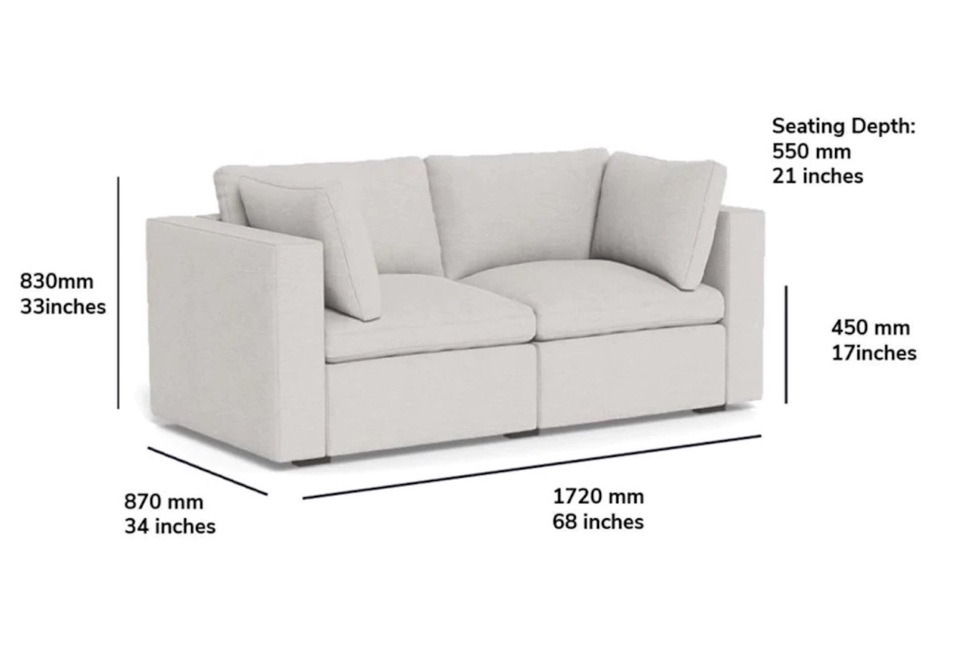 Dimensions: 68" W x 33" H x 34" D
