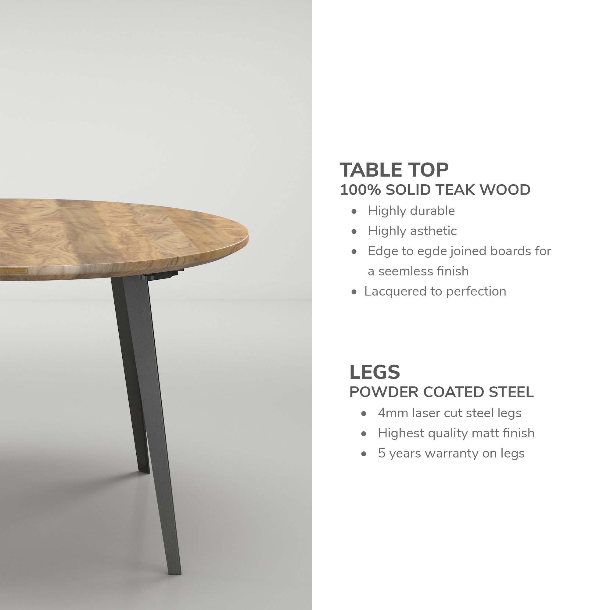 Solid Wood15-day no questions asked returns | Solid teak wood & laser-cut steel construction | Free shipping & assembly service (Bangalore Only) | 3 years warranty