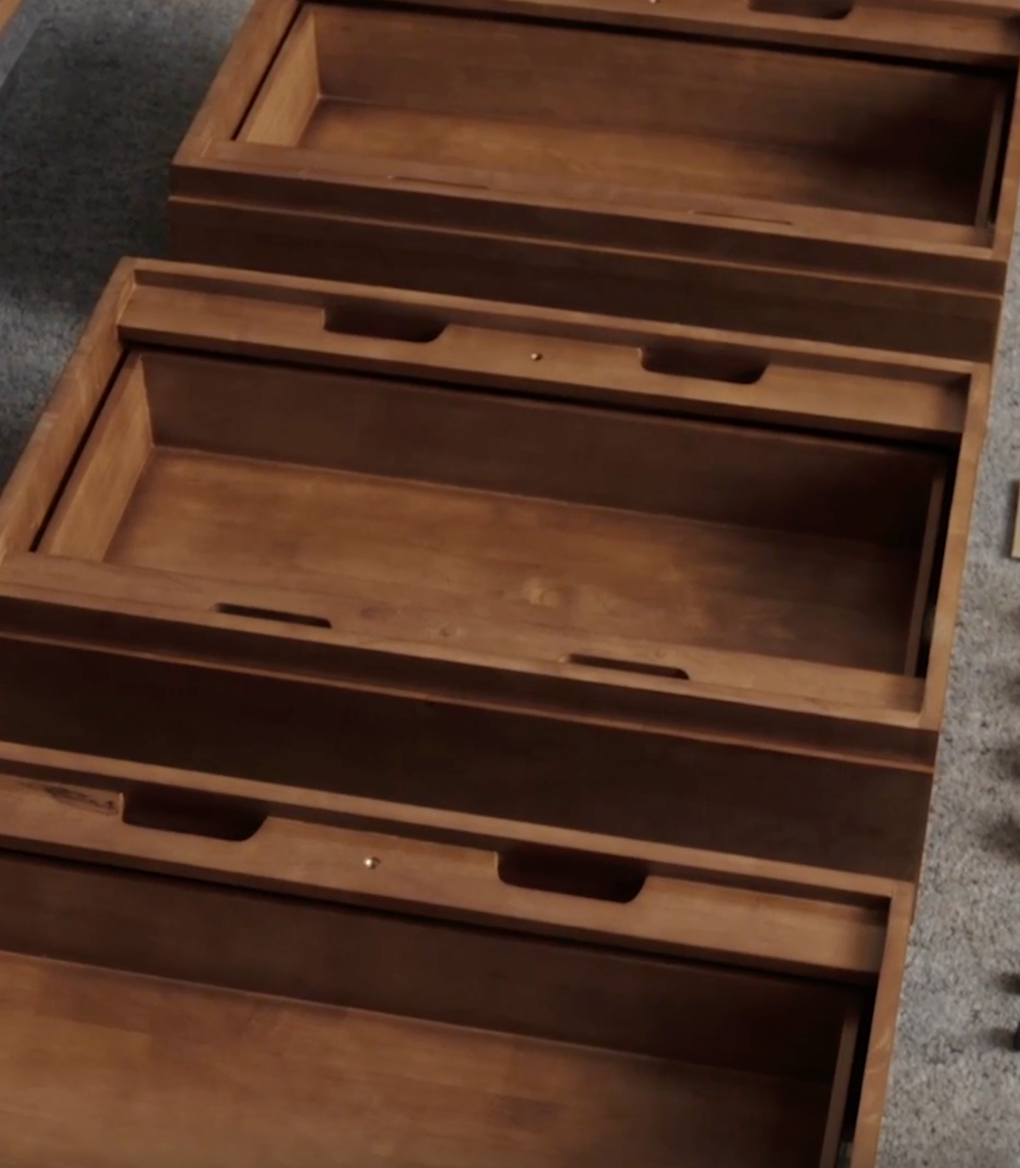 Our furniture is crafted from 100% solid Walnut, Teak, and Oak — natural hardwoods selected for their durability, beauty, and aging character. With proper care, these materials will last for generations.